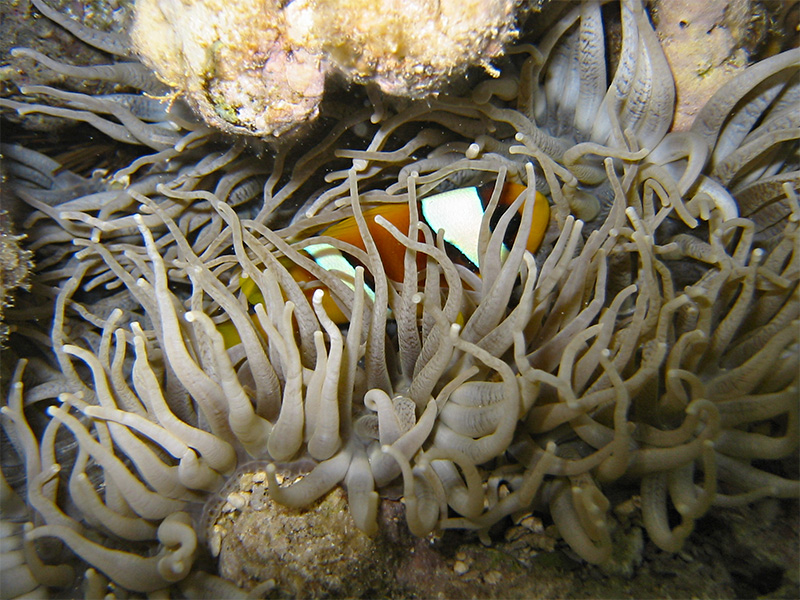 Die Lederanemone (Heteractis crispa) ist eine Symbioseanemone und eine wichtige Symbiosepartnerin der Anemonenfische (Amphiprion).