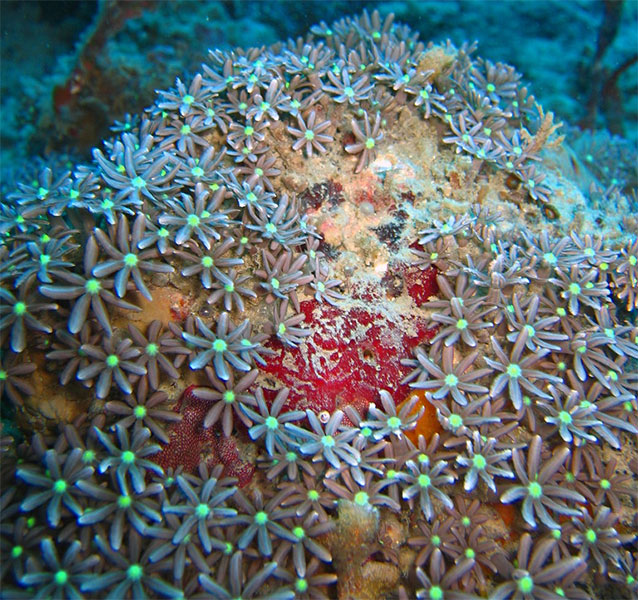 - Knopia octocontacanalis unterscheidet sich in einem wesentlichen Merkmal von fast allen anderen Korallen der Unterklasse Octocorallia