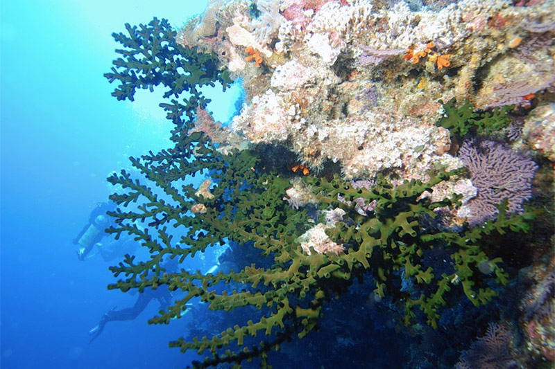 - sie ist eine riffbildende Korallenart und wächst auch zwischen langsam wachsenden zooxanthelaten Steinkorallen