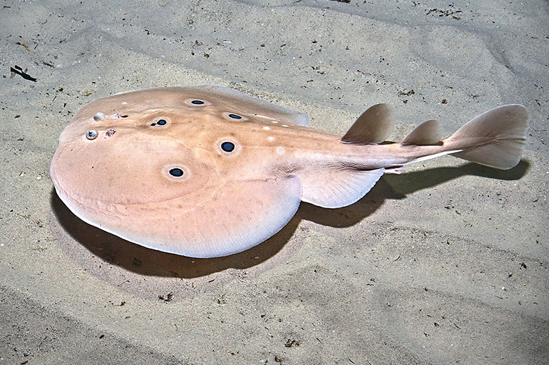 - die Unterseite des Gefleckten Zitterrochens ist cremefarben