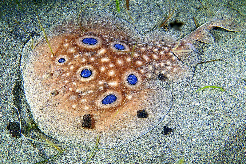 Der Gefleckte Zitterrochen (Torpedo torpedo) ist ein nachtaktiver Raubfisch, der viel Zeit damit verbringt, eingegraben im Sediment auf dem Meeresboden zu ruhen.