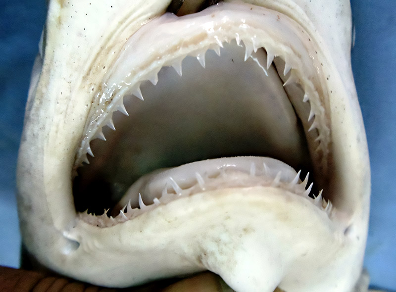 - das gewölbte Maul des Hartnasenhais weist an den Ecken unauffällige Furchen auf