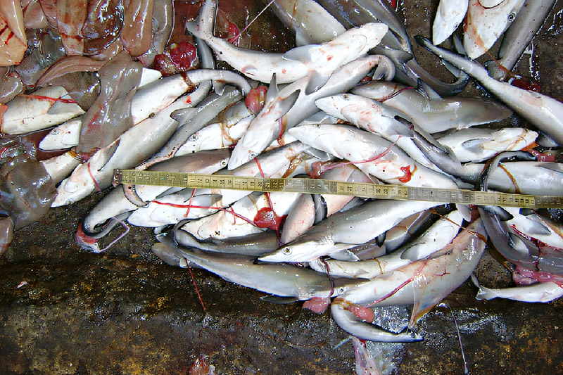 - die relativ kurzen und spitzen Brustflossen des Hartnasenhais sind sichelförmig