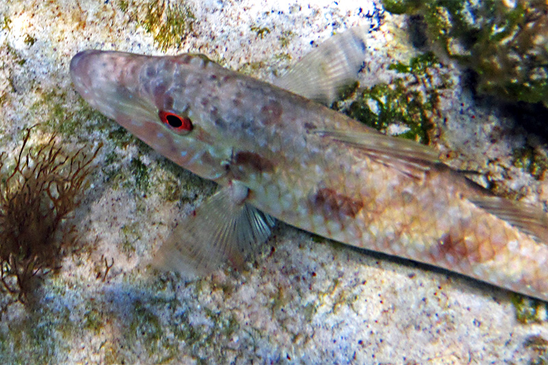 Die Gefleckte Meerbarbe (Pseudupeneus maculatus) ernährt sich hauptsächlich von kleinen Wirbellosen.