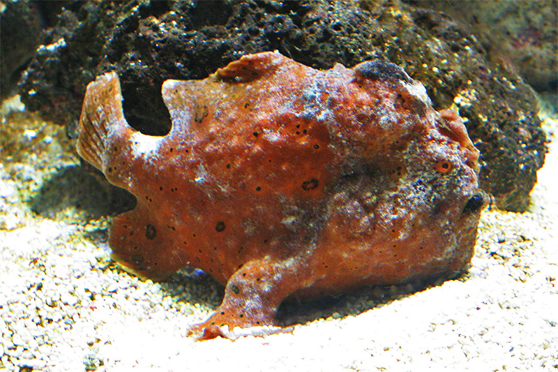 Der Commersons Anglerfisch (Fowlerichthys ocellatus) ernährt sich in freier Natur hauptsächlich von Fischen.
