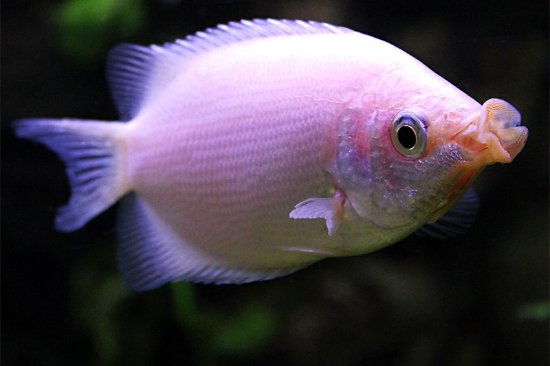 Der Küssende Gurami wird in seinen Heimatländern in Teichwirtschaften gezüchtet. Dabei entstand eine helle (xanthistische) Zuchtform.