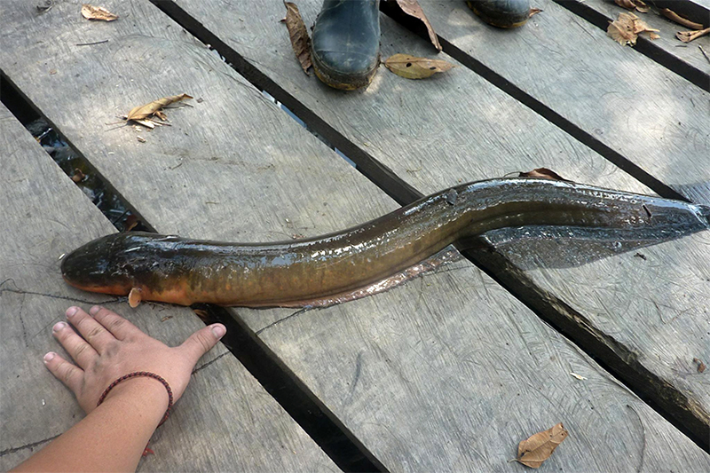 Electrophorus varii kann eine maximale Länge von knapp 150 cm erreichen.