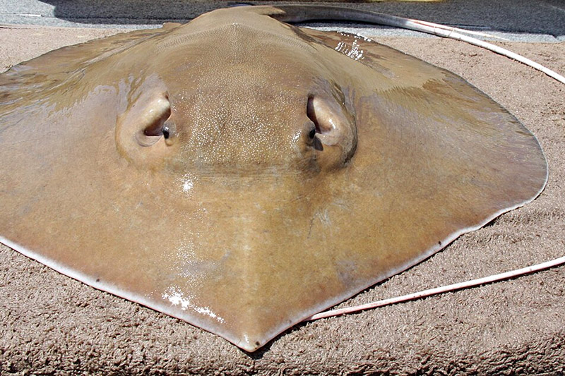 • auf der ventralen Seite der Scheibe befinden sich fünf Paar Kiemenspalten. Die Kiemenöffnungen sind sehr groß
