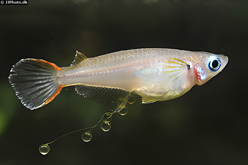 Bei der Paarung schwimmt das Männchen aufgeregt um das Weibchen herum, spreizt seine Flossen und versucht, es in Richtung feingliedriger Pflanzen oder eines Laichmopps zu treiben. Zeigt das Weibchen Interesse, schwimmen beide Tiere eng nebeneinander her. Dabei stupst das Männchen das Weibchen oft sanft an der Flanke oder unter dem Bauch an.